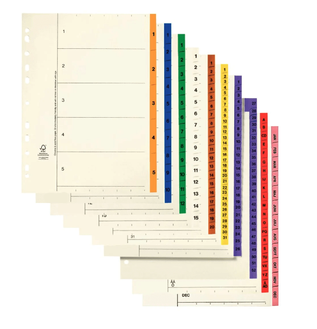 Slitstarka pärmregister tillverkade av 110 g miljövänligt papper som är klorfritt, syrafritt och åldersstabilt. Färgkodade förstärkta flikar i plast. Multihålade och påsförpackade.